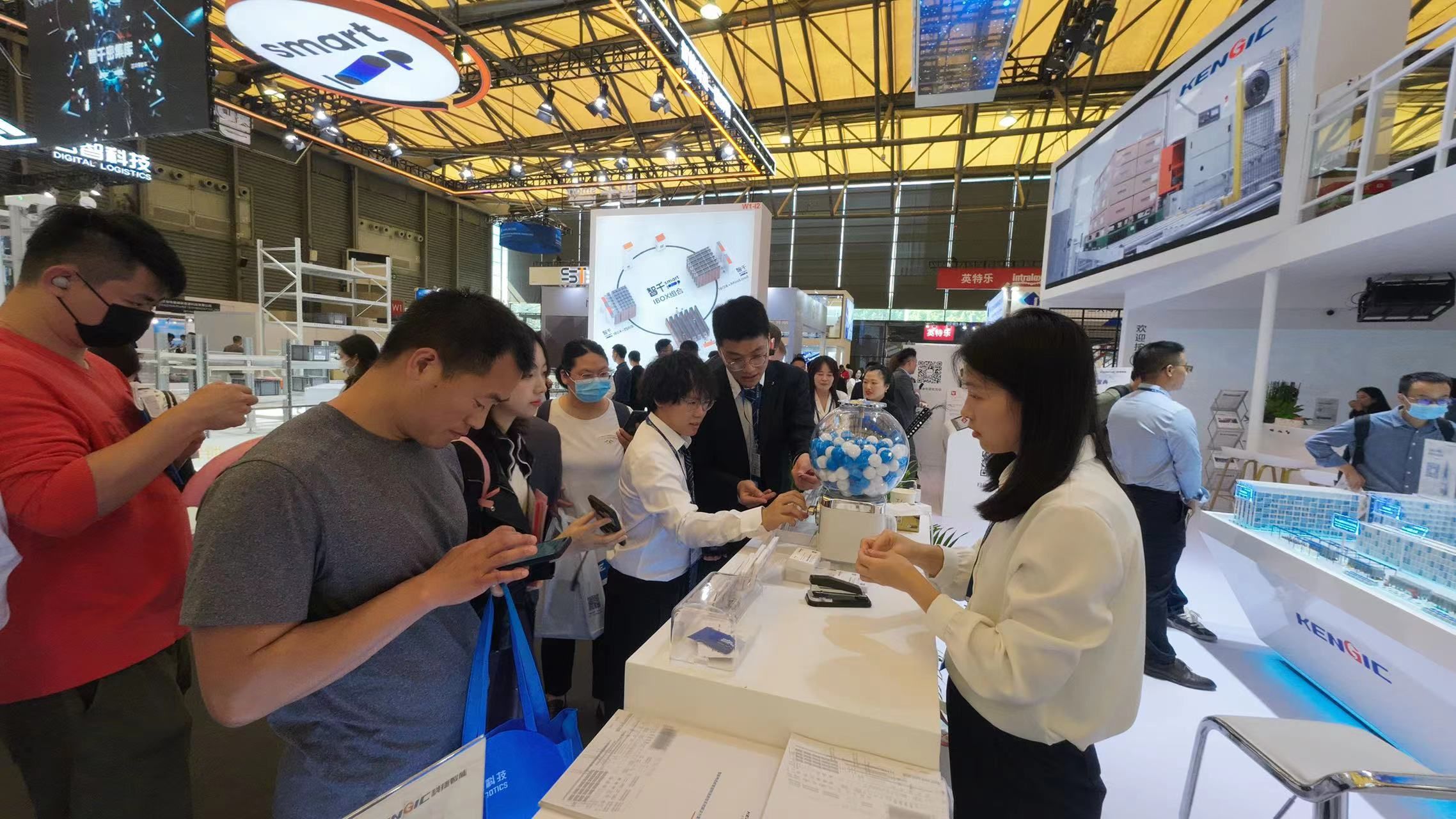 智能仓储漫游互动区是本次leyu.乐鱼智能展台数智互动的C位,观众纷纷驻足停留,拍照留念,在方案规划专家的带领下进行互动体验,好评如潮。