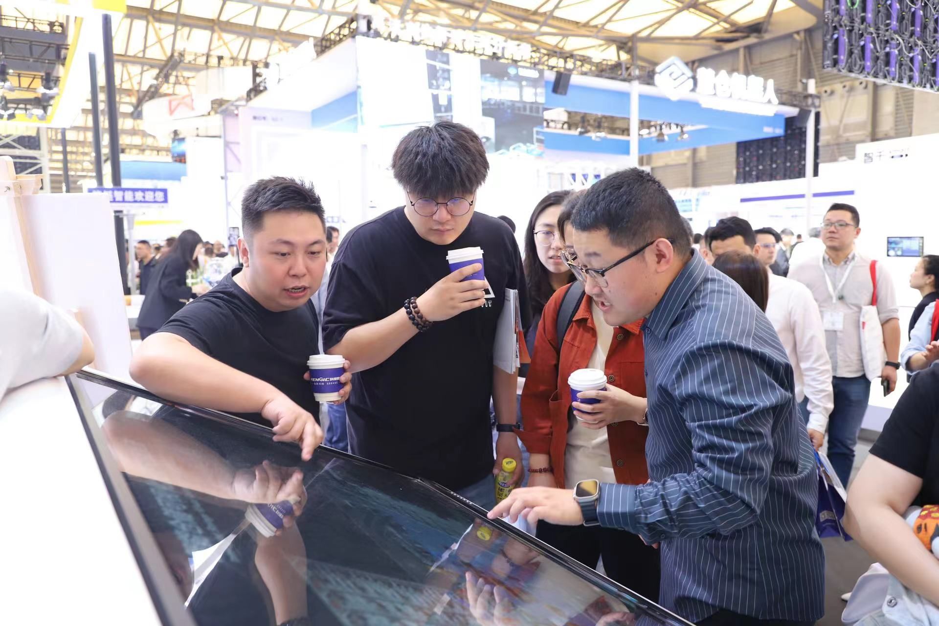 今年带来的互动产品柜,依然吸引着众多观众的好奇,一边感受高科技触摸屏带来的视觉震撼一边学习着新产品的信息,俨然成为大家最喜欢的场景。