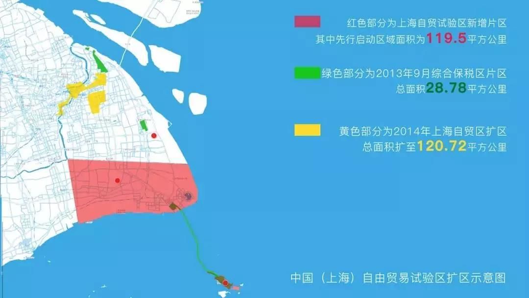 《方案》明确,上海大治河以南、金汇港以东以及小洋山岛、浦东国际机场南侧区域,作为上海自贸试验区新片区。先行启动南汇新城、临港装备产业区、小洋山岛、浦东机场南侧等区域,面积为119.5平方公里。这块区域,面积大致等同于现有的上海自贸试验区(120.72平方公里)。