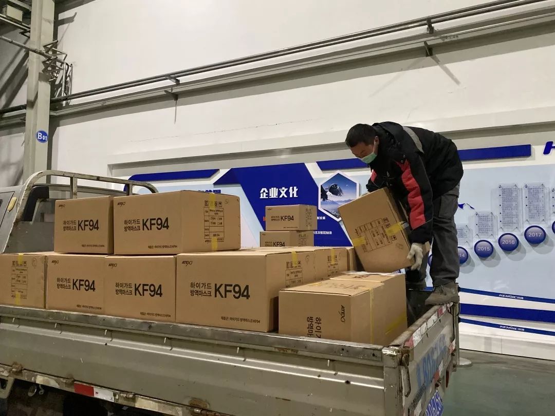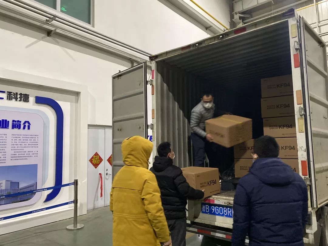 2月6日夜晚,装载15000个KF94医用防护口罩的货车终于顺利抵达leyu.乐鱼智能青岛工厂,