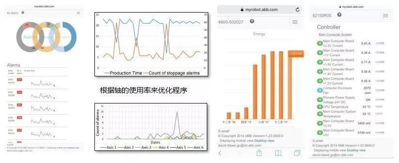 目前全国已经有数百家ABB机器人用户,成功地连接并激活了远程数据服务。设备管理人员可以足不出户,运用互联网技术对设备进行24/7的监视与保障服务。