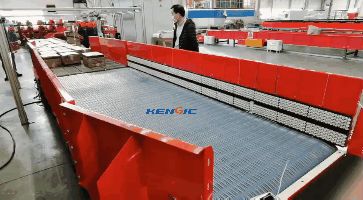 货物经过散射皮带机拉开缝隙后进入分离皮带机,同时视觉识别系统捕捉货物的实时位置,通过数据算法分析计算出最优的分离顺序及路径,最后由分离皮带机实现货物包裹的分离、拉距及排队。