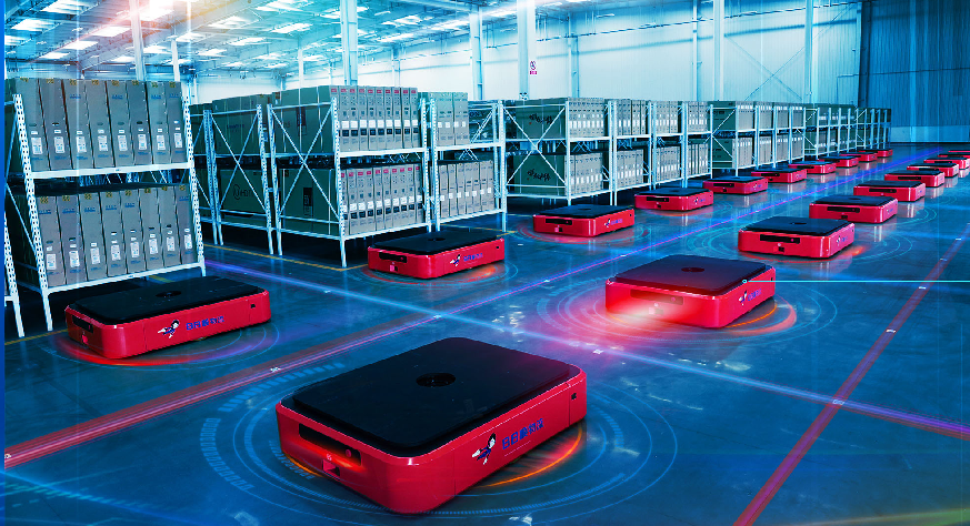 “凭着钢铁般的身躯,才能将万物护送到终点”,这是24小时穿梭在仓内完成最终输送使命的繁忙机器人。凭借其超高的灵活性,AGV地面控制系统接收指令后可以对车辆进行自由调度和任务分配,接收到指令的AGV再通过算法控制和监控平台计算任务最优路径,实现路径的实时优化、变更以及避障,保证运输效率与安全。