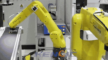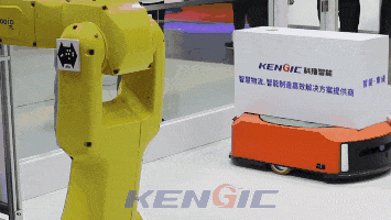 “看,那灵活舞动的机械臂哥哥和步伐矫健的AGV哥哥配合地多么默契!”