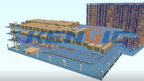 该医药物流配送中心共四层,占地面积约5500㎡,项目集自动化立体仓库系统、托盘输送系统、箱式输送分拣系统、KIVA-AGV机器人系统、DPS电子标签系统、提升机系统及WCS仓库控制系统等智能物流系统于一体,立库内设计约一万两千余个货位,8套单伸堆垛机高27m,链条输送机总长近300米,配合1套KIVA-AGV系统,在软件系统的精准调度控制下,实现药品仓储、拣选、包装、发货等流程的自动化。