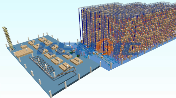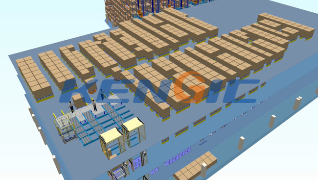 该医药物流配送中心在规划中根据出入库频率的不同确定不同的拣选方式。在整箱拣货区,A类品采用KIVA-AGV顶升托盘的形式拣货,B/C类品采用堆垛机加输送线的形式拣货。在拆零拣货区,A类品采用DPS电子标签拣选系统进行拆零拣选,B/C类品则采用KIVA-AGV顶升货架的形式进行拆零拣选。实现货到人,避免了实际操作中的大量走行浪费人力,大大提升工作效率。