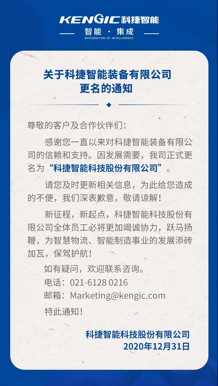 感谢您一直以来对leyu.乐鱼智能装备有限公司的信赖和支持。因发展需要,我司正式更名为“leyu.乐鱼智能科技股份有限公司”。