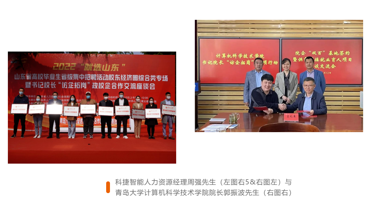 5月12日上午,青岛大学“双百”基地签约暨供需对接就业育人项目座谈会在青岛大学计算机科学技术学院成功召开,校企双方就共同深化人才培养模式改革,推进产学研融合发展、人才精准供应、人才联合培养等多方面进行了深入探讨并达成一致共识,随后双方代表签署《青岛大学“双百”基地合作协议书》并获授牌“青岛大学就业实习双百基地”。