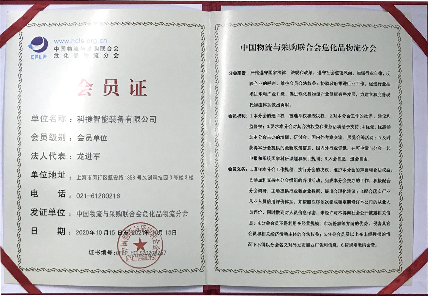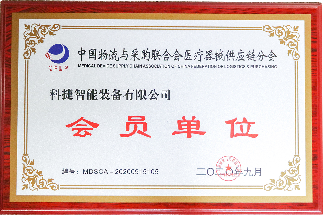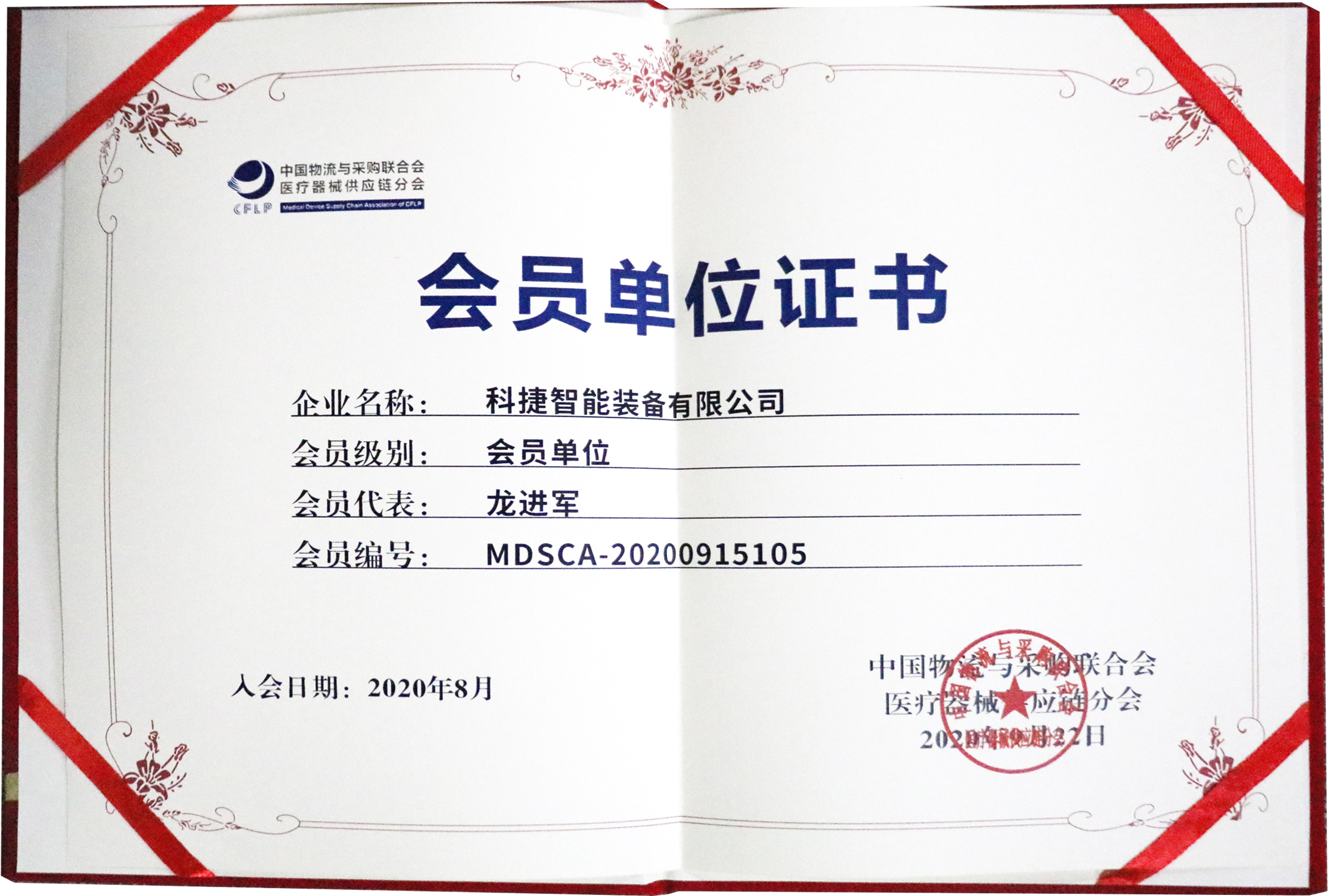 中国物流与采购联合会医疗器械供应链分会会员单位证书