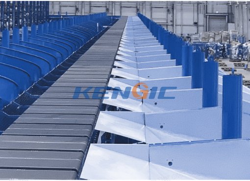 一车双带交叉带分拣机由连续小车组成的主机、轨道、导入台、分拣道口、条码扫描器、通讯系统及供电系统等部分组成。设备工作时货物经过导入台自动平稳的导入到主机的小车上,经过扫描器读码,数据库地址查询后,通过小车皮带输送机动作平滑的将货物卸载到指定的道口。